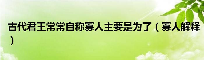 大家好,伊人来为大家解答以上问题。古代君王常常自称寡人主要是为了,寡人解释很多人还不知道,现在让我们一起来看看吧!