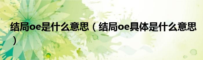 大家好,伊人来为大家解答以上问题。结局oe是什么意思,结局oe具体是什么意思很多人还不知道,现在让我们一起来看看吧!