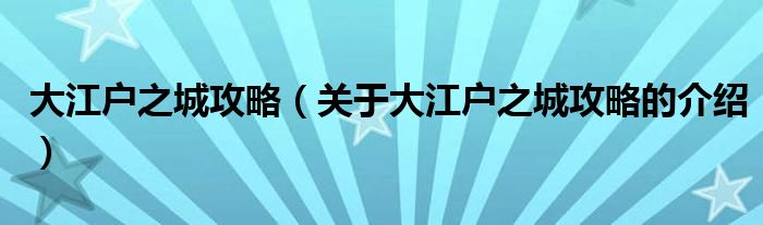 大家好,小新来为大家解答以上的问题。大江户之城攻略,关于大江户之城攻略的介绍很多人还不知道,现在让我们一起来看看吧!