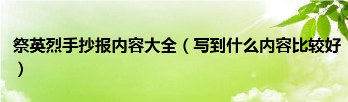 大家好,伊人来为大家解答以上问题。祭英烈手抄报内容大全,写到什么内容比较好很多人还不知道,现在让我们一起来看看吧!