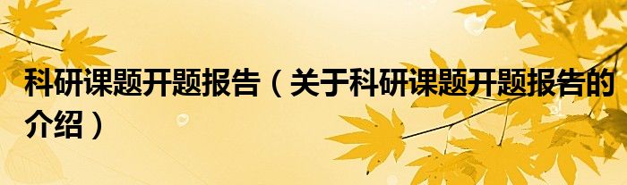 大家好,小新来为大家解答以上的问题。科研课题开题报告,关于科研课题开题报告的介绍很多人还不知道,现在让我们一起来看看吧!