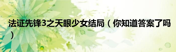 大家好,伊人来为大家解答以上问题。法证先锋3之天眼少女结局,你知道答案了吗很多人还不知道,现在让我们一起来看看吧!