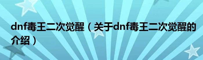 大家好,小新来为大家解答以上的问题。dnf毒王二次觉醒,关于dnf毒王二次觉醒的介绍很多人还不知道,现在让我们一起来看看吧!