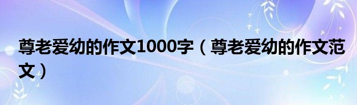 大家好,伊人来为大家解答以上问题。尊老爱幼的作文1000字,尊老爱幼的作文范文很多人还不知道,现在让我们一起来看看吧!