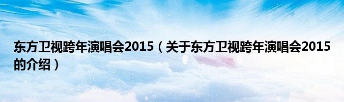 大家好,小新来为大家解答以上的问题。东方卫视跨年演唱会2015,关于东方卫视跨年演唱会2015的介绍很多人还不知道,现在让我们一起来看看吧!