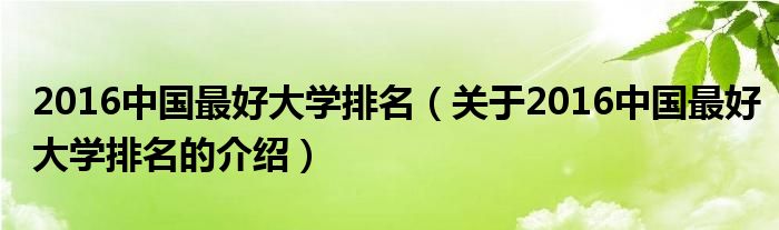 大家好,小新来为大家解答以上的问题。2016中国最好大学排名,关于2016中国最好大学排名的介绍很多人还不知道,现在让我们一起来看看吧!