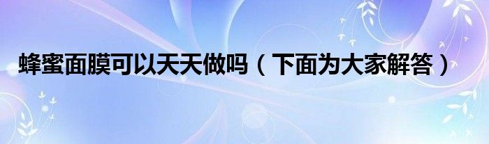 大家好,伊人来为大家解答以上问题。蜂蜜面膜可以天天做吗,下面为大家解答很多人还不知道,现在让我们一起来看看吧!