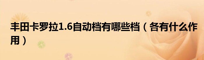大家好,伊人来为大家解答以上问题。丰田卡罗拉1.6自动档有哪些档,各有什么作用很多人还不知道,现在让我们一起来看看吧!
