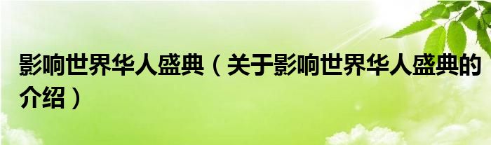 大家好,小新来为大家解答以上的问题。影响世界华人盛典,关于影响世界华人盛典的介绍很多人还不知道,现在让我们一起来看看吧!