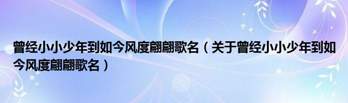 大家好,伊人来为大家解答以上问题。曾经小小少年到如今风度翩翩歌名,关于曾经小小少年到如今风度翩翩歌名很多人还不知道,现在让我们一起来看看吧!