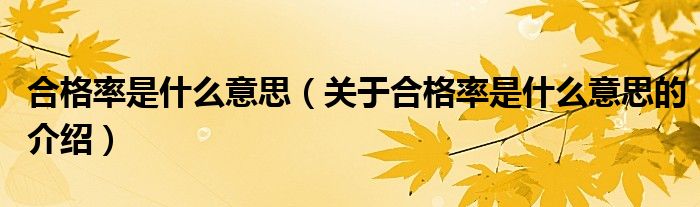 大家好,小新来为大家解答以上的问题。合格率是什么意思,关于合格率是什么意思的介绍很多人还不知道,现在让我们一起来看看吧!