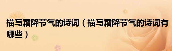 大家好,伊人来为大家解答以上问题。描写霜降节气的诗词,描写霜降节气的诗词有哪些很多人还不知道,现在让我们一起来看看吧!