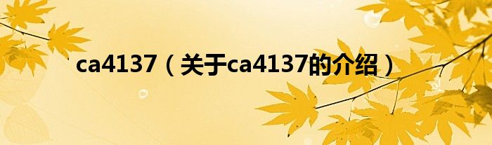 大家好,小新来为大家解答以上的问题。ca4137,关于ca4137的介绍很多人还不知道,现在让我们一起来看看吧!