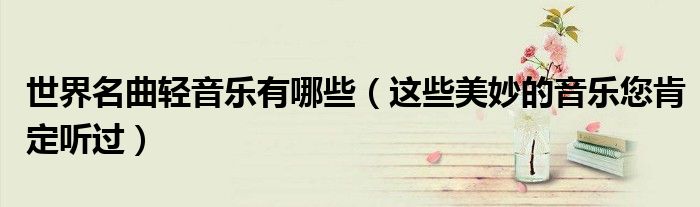 大家好,伊人来为大家解答以上问题。世界名曲轻音乐有哪些,这些美妙的音乐您肯定听过很多人还不知道,现在让我们一起来看看吧!