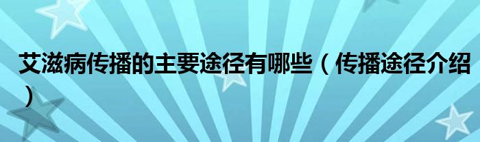 艾滋病传播的主要途径有哪些(传播途径介绍)