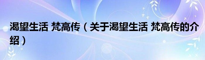 大家好,小新来为大家解答以上的问题。渴望生活 梵高传,关于渴望生活 梵高传的介绍很多人还不知道,现在让我们一起来看看吧!