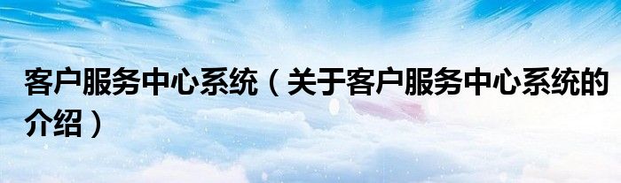 大家好,小新来为大家解答以上的问题。客户服务中心系统,关于客户服务中心系统的介绍很多人还不知道,现在让我们一起来看看吧!