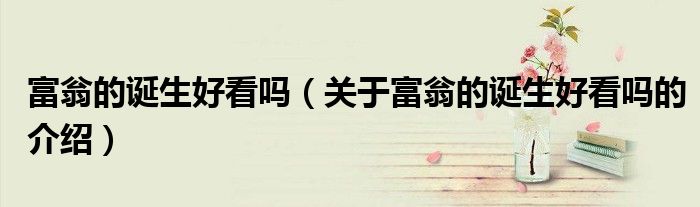 大家好,小新来为大家解答以上的问题。富翁的诞生好看吗,关于富翁的诞生好看吗的介绍很多人还不知道,现在让我们一起来看看吧!