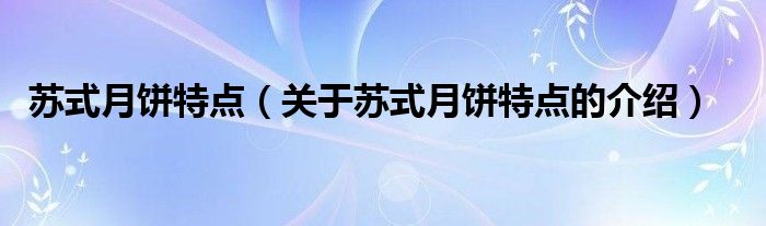 大家好,小新来为大家解答以上的问题。苏式月饼特点,关于苏式月饼特点的介绍很多人还不知道,现在让我们一起来看看吧!