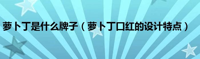 大家好,伊人来为大家解答以上问题。萝卜丁是什么牌子,萝卜丁口红的设计特点很多人还不知道,现在让我们一起来看看吧!
