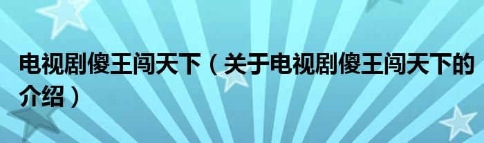 大家好,小新来为大家解答以上的问题。电视剧傻王闯天下,关于电视剧傻王闯天下的介绍很多人还不知道,现在让我们一起来看看吧!