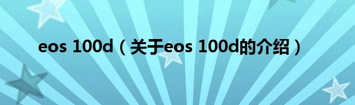 大家好,小新来为大家解答以上的问题。eos 100d,关于eos 100d的介绍很多人还不知道,现在让我们一起来看看吧!