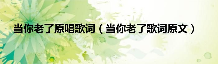 大家好,伊人来为大家解答以上问题。当你老了原唱歌词,当你老了歌词原文很多人还不知道,现在让我们一起来看看吧!