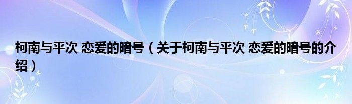 大家好,小新来为大家解答以上的问题。柯南与平次 恋爱的暗号,关于柯南与平次 恋爱的暗号的介绍很多人还不知道,现在让我们一起来看看吧!