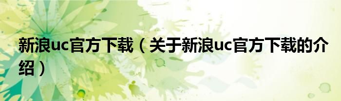 大家好,小新来为大家解答以上的问题。新浪uc官方下载,关于新浪uc官方下载的介绍很多人还不知道,现在让我们一起来看看吧!