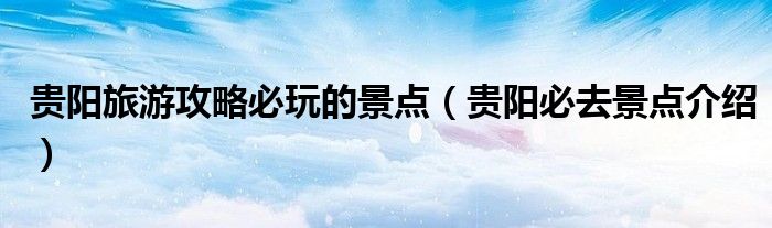 大家好,伊人来为大家解答以上问题。贵阳旅游攻略必玩的景点,贵阳必去景点介绍很多人还不知道,现在让我们一起来看看吧!