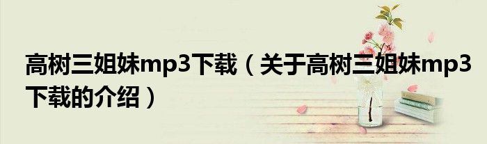 大家好,小新来为大家解答以上的问题。高树三姐妹mp3下载,关于高树三姐妹mp3下载的介绍很多人还不知道,现在让我们一起来看看吧!
