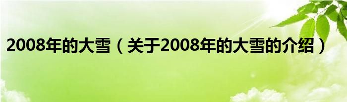 大家好,小新来为大家解答以上的问题。2008年的大雪,关于2008年的大雪的介绍很多人还不知道,现在让我们一起来看看吧!