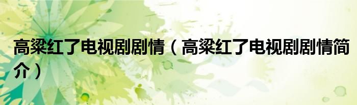 大家好,伊人来为大家解答以上问题。高粱红了电视剧剧情,高粱红了电视剧剧情简介很多人还不知道,现在让我们一起来看看吧!