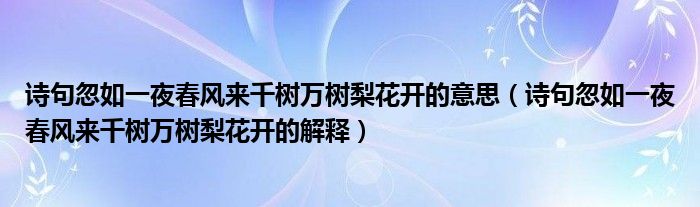 大家好,伊人来为大家解答以上问题。诗句忽如一夜春风来千树万树梨花开的意思,诗句忽如一夜春风来千树万树梨花开的解释很多人还不知道,现在让我们一起来看看吧!