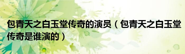 大家好,伊人来为大家解答以上问题。包青天之白玉堂传奇的演员,包青天之白玉堂传奇是谁演的很多人还不知道,现在让我们一起来看看吧!