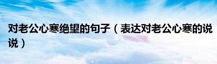 大家好,伊人来为大家解答以上问题。对老公心寒绝望的句子,表达对老公心寒的说说很多人还不知道,现在让我们一起来看看吧!