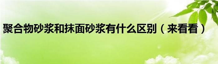 大家好,伊人来为大家解答以上问题。聚合物砂浆和抹面砂浆有什么区别,来看看很多人还不知道,现在让我们一起来看看吧!