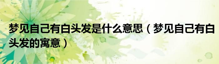 大家好,伊人来为大家解答以上问题。梦见自己有白头发是什么意思,梦见自己有白头发的寓意很多人还不知道,现在让我们一起来看看吧!