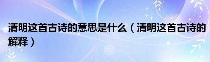 大家好,伊人来为大家解答以上问题。清明这首古诗的意思是什么,清明这首古诗的解释很多人还不知道,现在让我们一起来看看吧!
