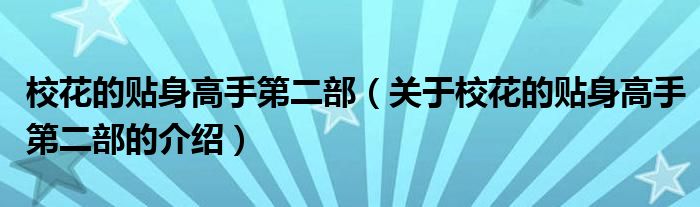 大家好,小新来为大家解答以上的问题。校花的贴身高手第二部,关于校花的贴身高手第二部的介绍很多人还不知道,现在让我们一起来看看吧!