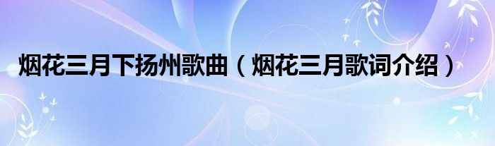 大家好,伊人来为大家解答以上问题。烟花三月下扬州歌曲,烟花三月歌词介绍很多人还不知道,现在让我们一起来看看吧!
