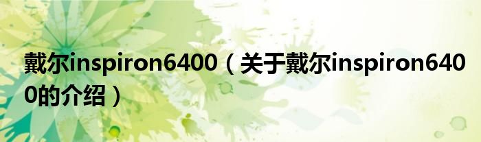 大家好,小新来为大家解答以上的问题。戴尔inspiron6400,关于戴尔inspiron6400的介绍很多人还不知道,现在让我们一起来看看吧!
