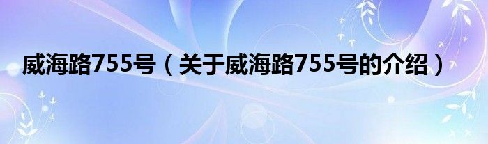 大家好,小新来为大家解答以上的问题。威海路755号,关于威海路755号的介绍很多人还不知道,现在让我们一起来看看吧!