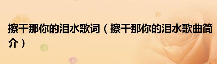 大家好,伊人来为大家解答以上问题。擦干那你的泪水歌词,擦干那你的泪水歌曲简介很多人还不知道,现在让我们一起来看看吧!
