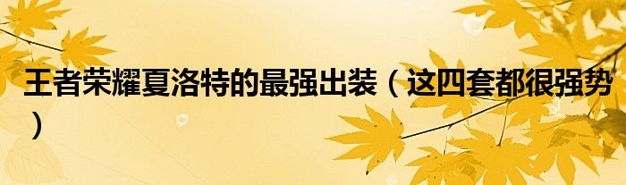 大家好,伊人来为大家解答以上问题。王者荣耀夏洛特的最强出装,这四套都很强势很多人还不知道,现在让我们一起来看看吧!