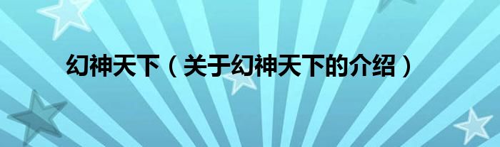 大家好,小新来为大家解答以上的问题。幻神天下,关于幻神天下的介绍很多人还不知道,现在让我们一起来看看吧!