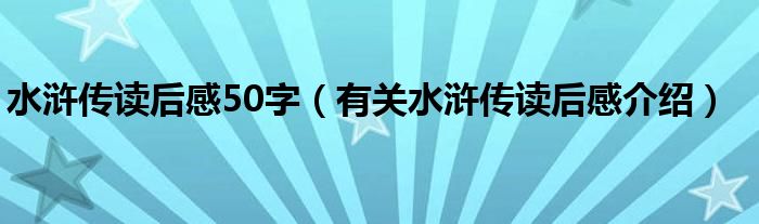 大家好,伊人来为大家解答以上问题。水浒传读后感50字,有关水浒传读后感介绍很多人还不知道,现在让我们一起来看看吧!