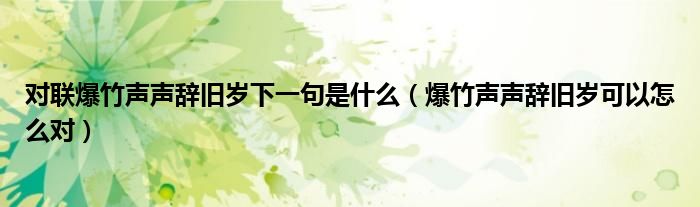 大家好,伊人来为大家解答以上问题。对联爆竹声声辞旧岁下一句是什么,爆竹声声辞旧岁可以怎么对很多人还不知道,现在让我们一起来看看吧!