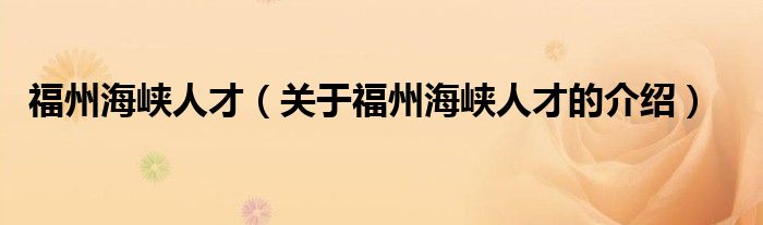 大家好,小新来为大家解答以上的问题。福州海峡人才,关于福州海峡人才的介绍很多人还不知道,现在让我们一起来看看吧!