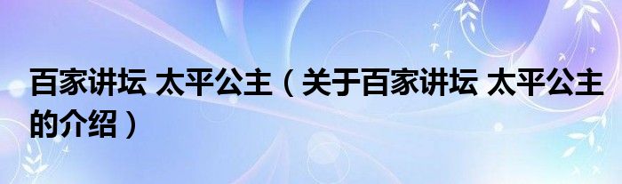 1、《太平公主》是央视《百家讲坛》于2008年推出的系列讲座。